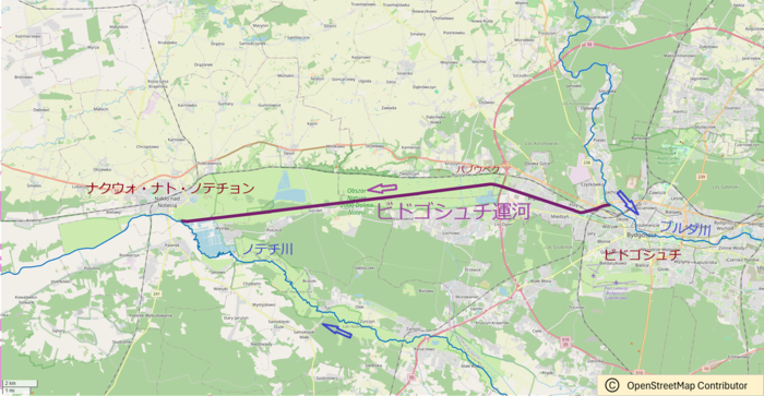 水系:ブルダ川(ヴィスワ川流域)とノテチ川(オーデル川流域)を接続