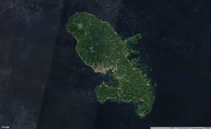 図3.マルティニークの衛星写真(一般財団法人リモート・センシング技術センターの地球可視化ツール「VEGA」を利用して作図)